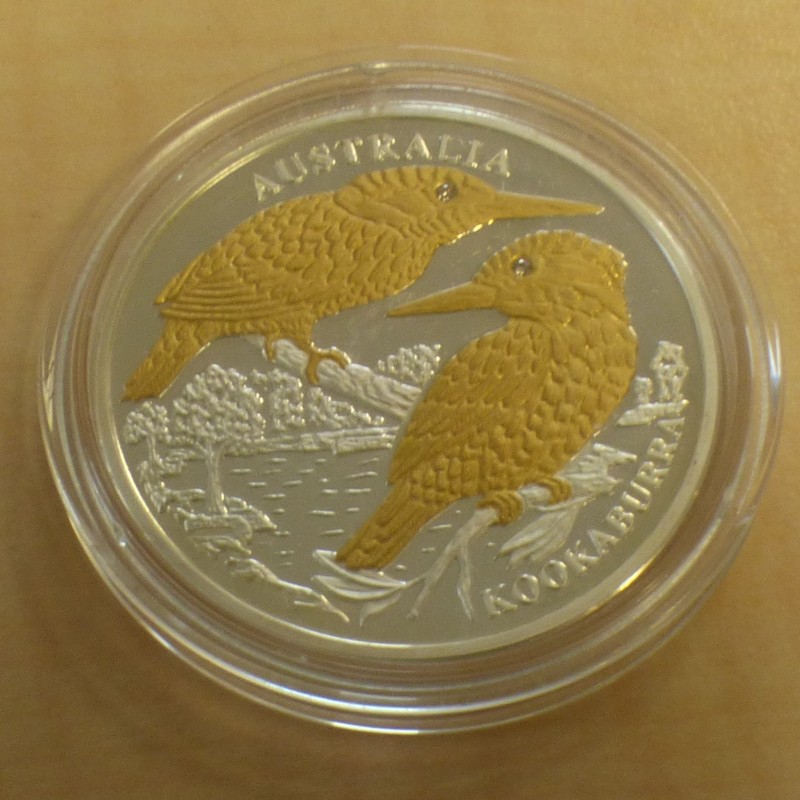 Liberia 10$ 2004 Kookaburra PROOF gilded silver 99.9% (20 g)