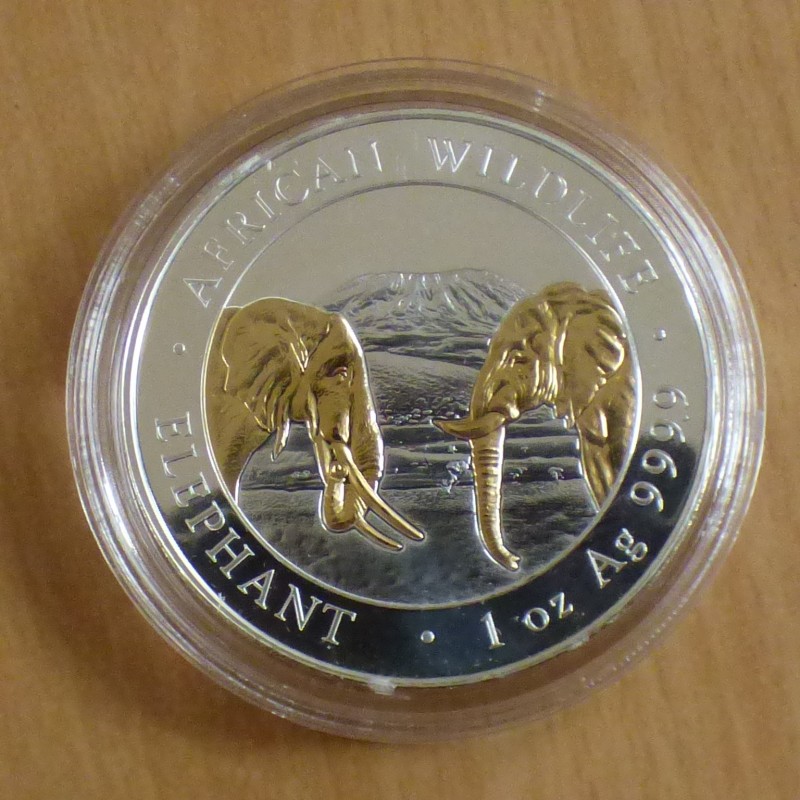 Somalia 100 schillings Elephant 2020 gilded silver 99.9% 1 oz