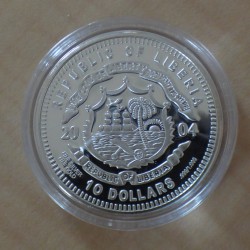 Liberia 10$ 2004 Penguins PROOF gilded silver 99.9% (20 g)