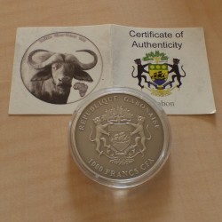 Gabon 1000 CFA Buffalo 2015 antique finish silver 99.9% 1 oz