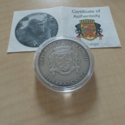 Congo 1000 CFA Gorille 2014 antique finish silver 99.9% 1 oz+CoA