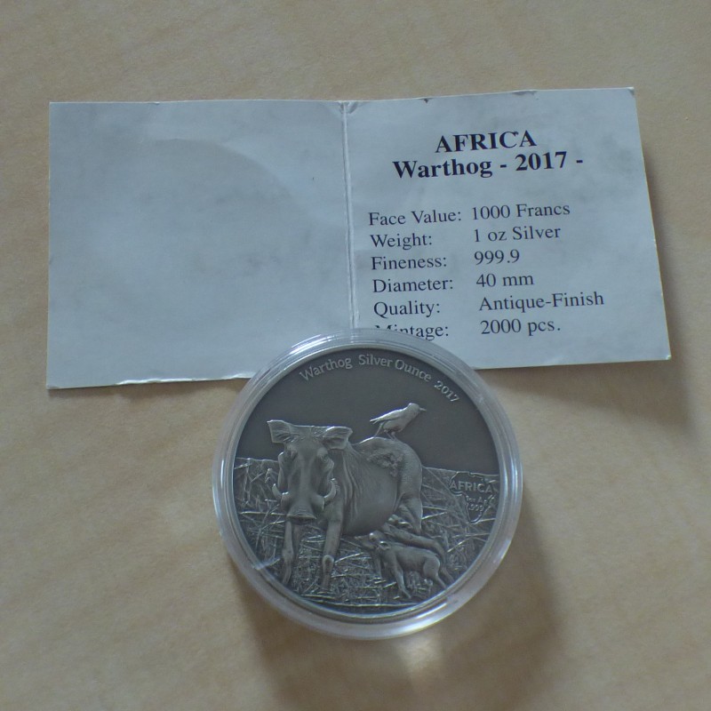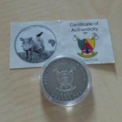 Cameroun 1000 CFA 2017 Warthog ntique finish silver 99.9% 1 oz + CoA