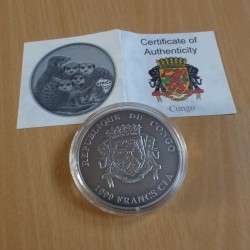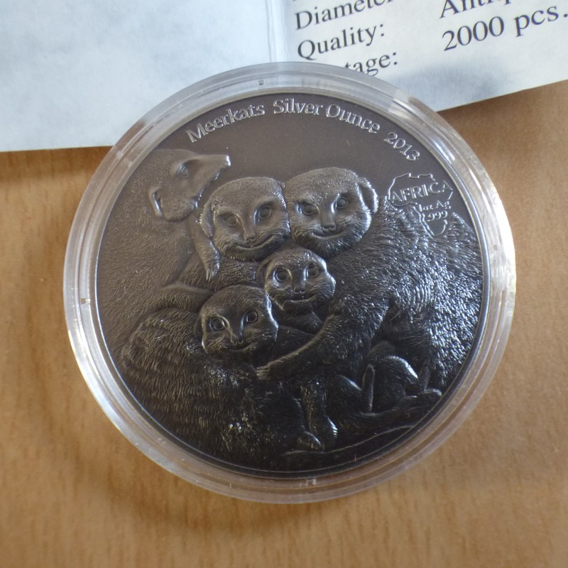 Congo 1000 CFA Suricate 2013 antique finish silver 99.9% 1 oz + CoA