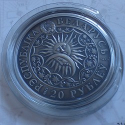 Belarus 20 Rubles 2013 Zodiac Sagittarius antique finish silver 92.5% (28.3 g) with Swarovski crystals