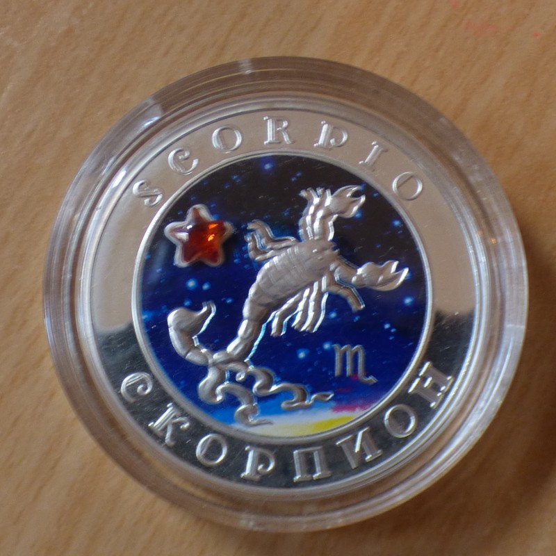Armenia 100 DRAM 2008 Scorpio Zodiac colored PROOF silver 92.5% 28.3g