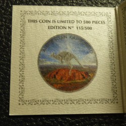 Australia 1$ Perth Mint Kangaroo 2018 colored antique finish silver 99.9% 1 oz+CoA