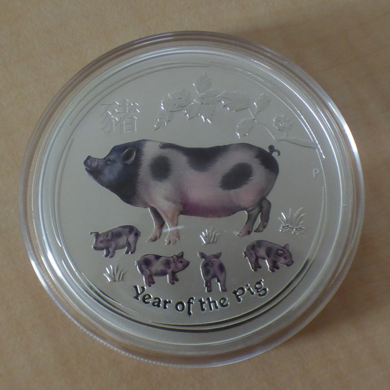 Australia 2$ Year of the Pig 2019 colored silver 99.9% 2 oz