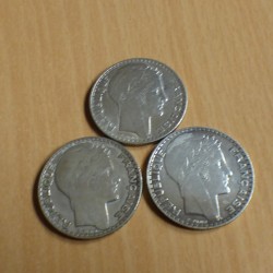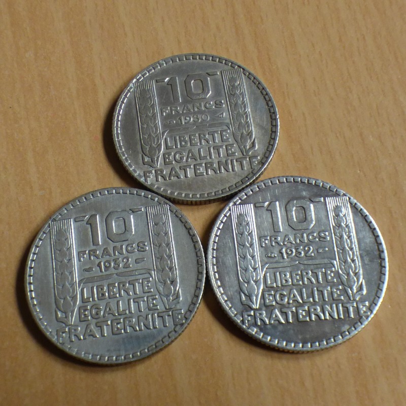 Lot of 3 coins France 10 francs TURIN 1930/1932 silver 68% (3*10 g)