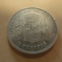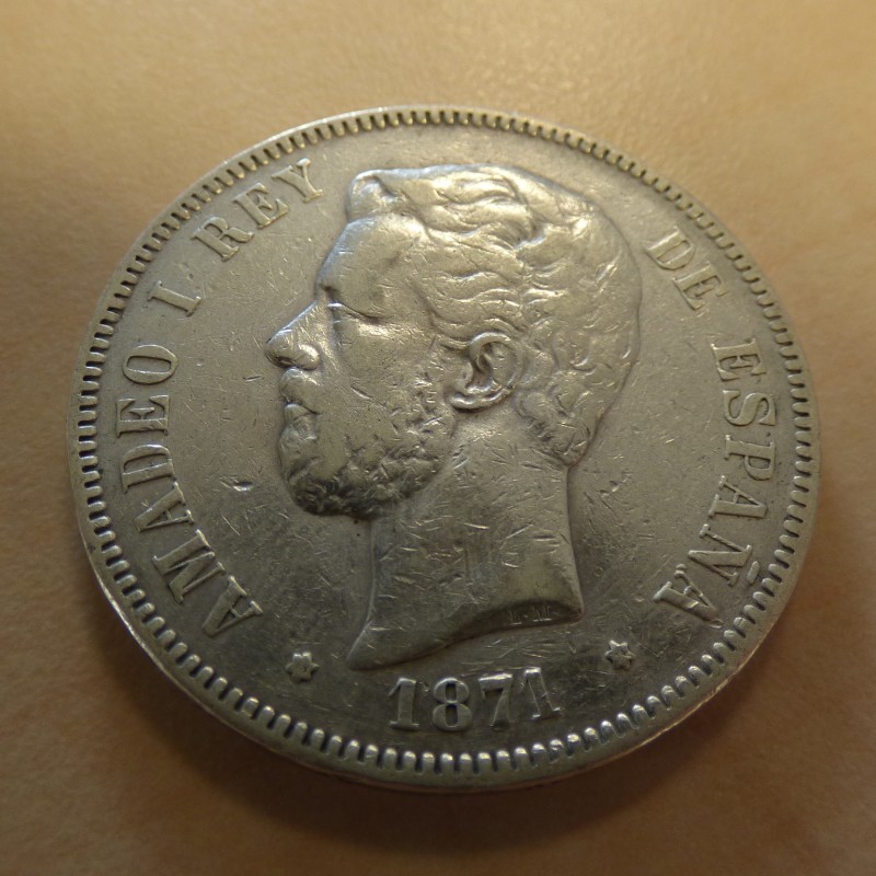 Spain 5 pesetas 1871 (74) DE-M silver 90% (25 g) F+