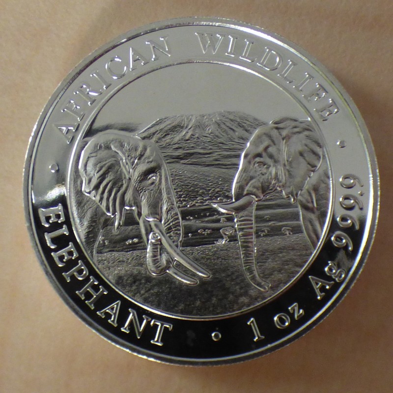 Somalia 100 schillings Elephant 2016 silver 99.9% tiny white marks close to the border