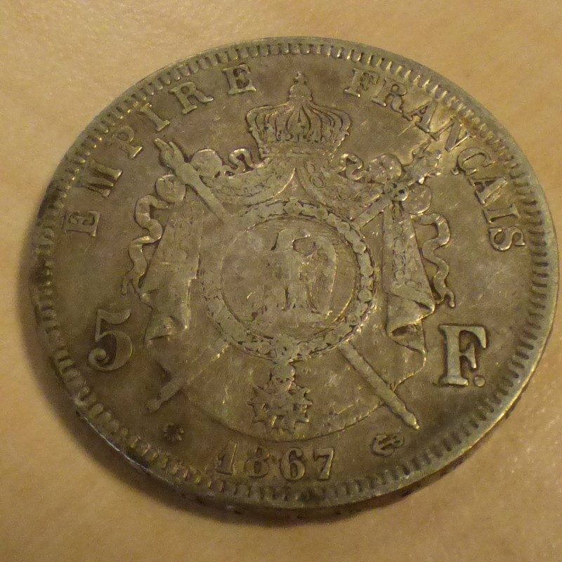 France 5 Francs 1867-A Napoleon III silver 90% (25g)