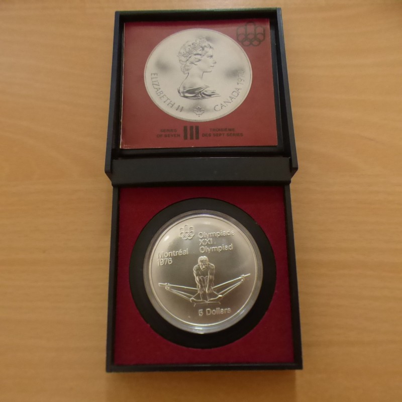 Canada 5$ 1976 Olympics Montreal 1976 Fencing silver 92.5% (24.3 g)+CoA+Box