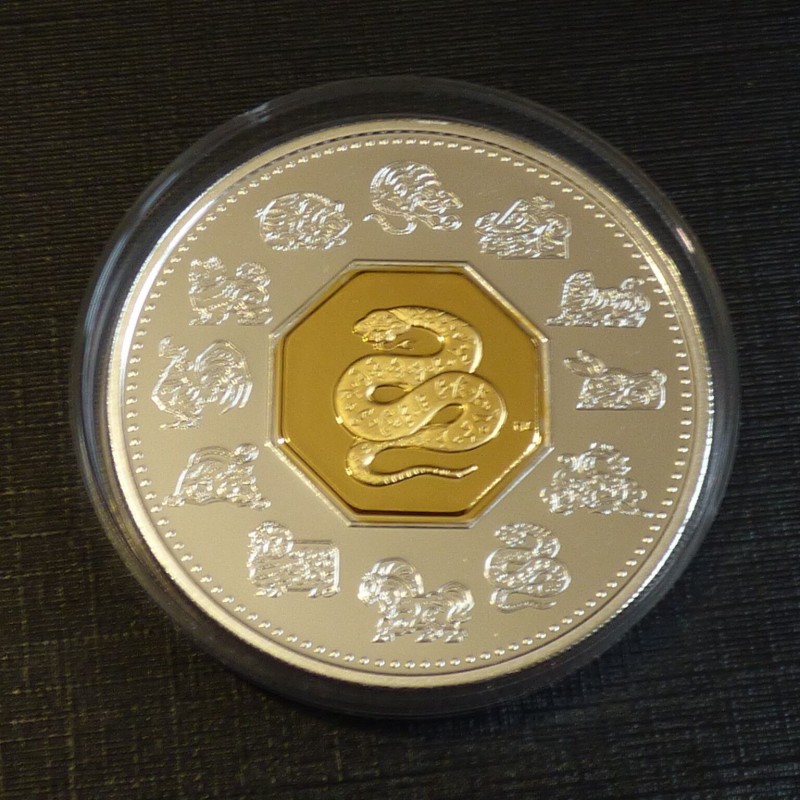 Canada 15$ Year of the Snake 2001 PROOF gilded silver 92.5% (33.6 g)+Box+CoA
