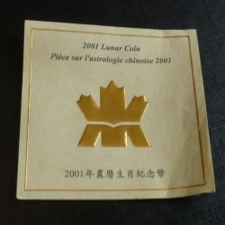 Canada 15$ Year of the Snake 2001 PROOF gilded silver 92.5% (33.6 g)+CoA
