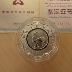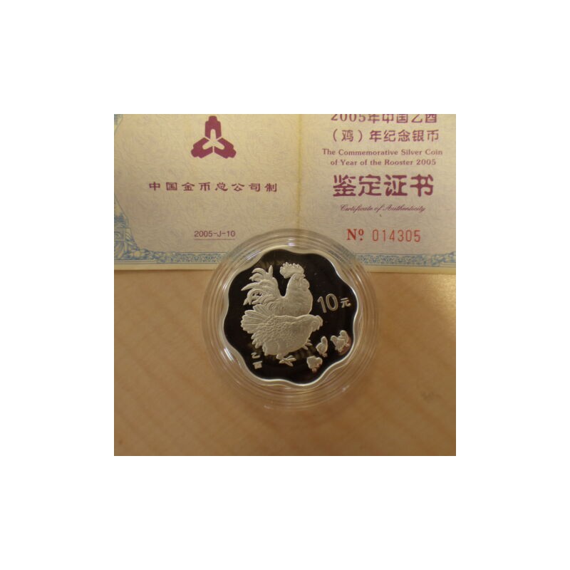 China 10 yuan 2005 Lunar Rooster silver 99.9% 1 oz in capsule + CoA