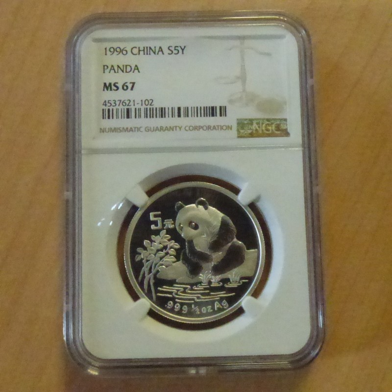 China 5 yuan Panda 1996 MS67 silver 99.9% 1/2 oz