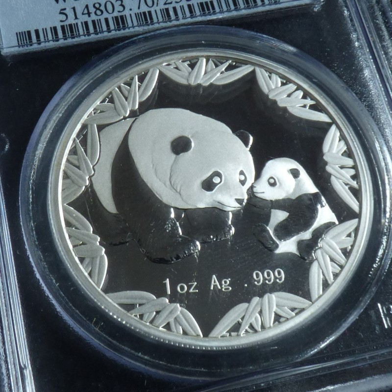 China 10 yuan Panda 2002 silver 99.9% 1 oz in capsule and sealed Seal slightly opened on one side