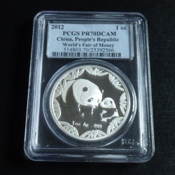China Panda 2012 PROOF World's Fair Money PR70 DCAM silver 999 1 oz