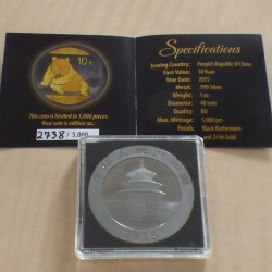 China 10 yuans Panda 2015 gilded ruthenium coted silver 99.9% 1 oz