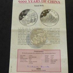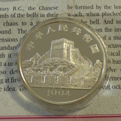 China 5 yuans Tuned Bell 1994 PROOF silver 90% (22.2g) + CoA