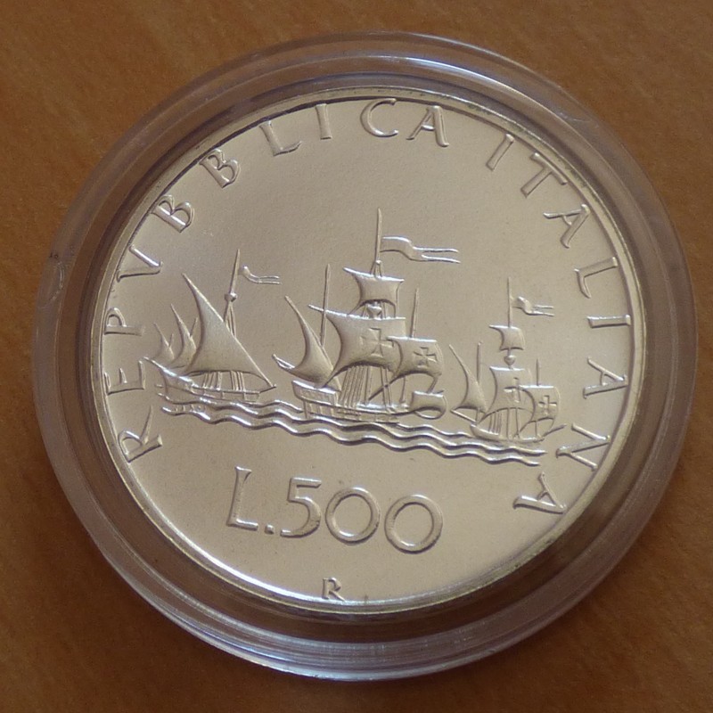 Italy 500 lira 1992 Columbus Ship silver 83.5% (11 g)