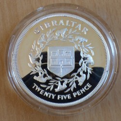 Gibraltar 25 pence 1977 Jubile 25 years PROOF silver 92.5% (28.28 g)