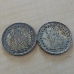 Switzerland 1 franc 1907+1939 silver 83.5% (2*5 g)