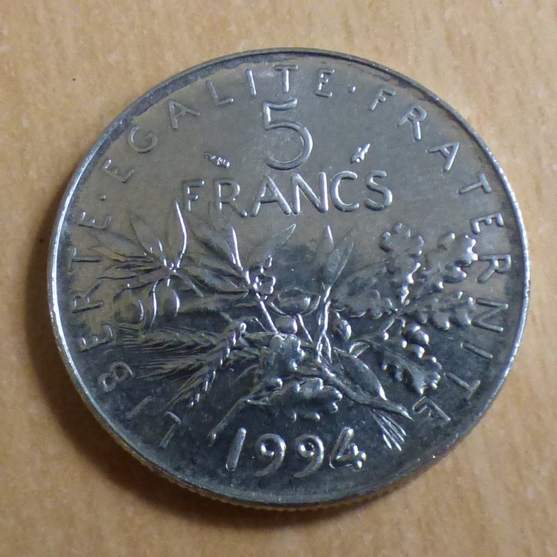 France 5 Francs Semeuse 1994 EF/VZ Nickel