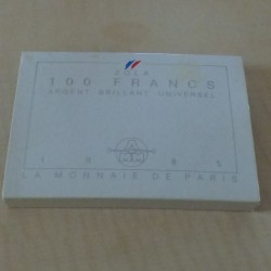 France 100 francs ZOLA 1985 BU silver 90% (15 g)+Box+CoA