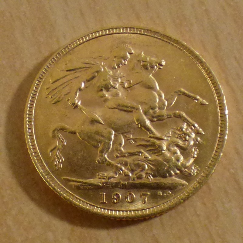 UK sovereign 1907 gold 91.7% (7.99g) VF+