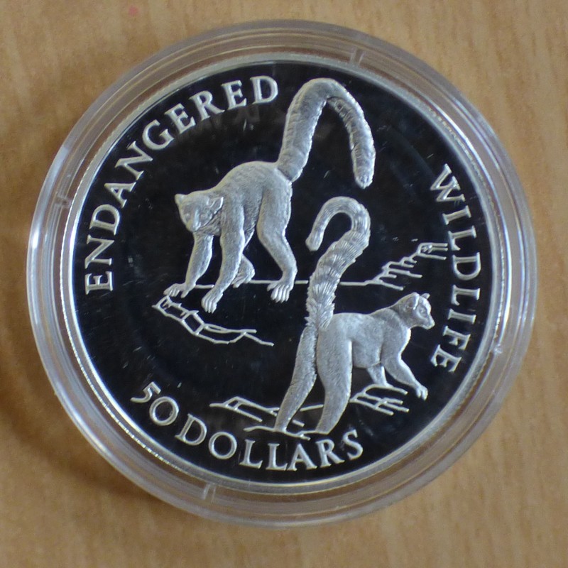 Cook Islands 50$ 1992 Endangered Wildlife LEMUR PROOF silver 92.5% (19.2 g)
