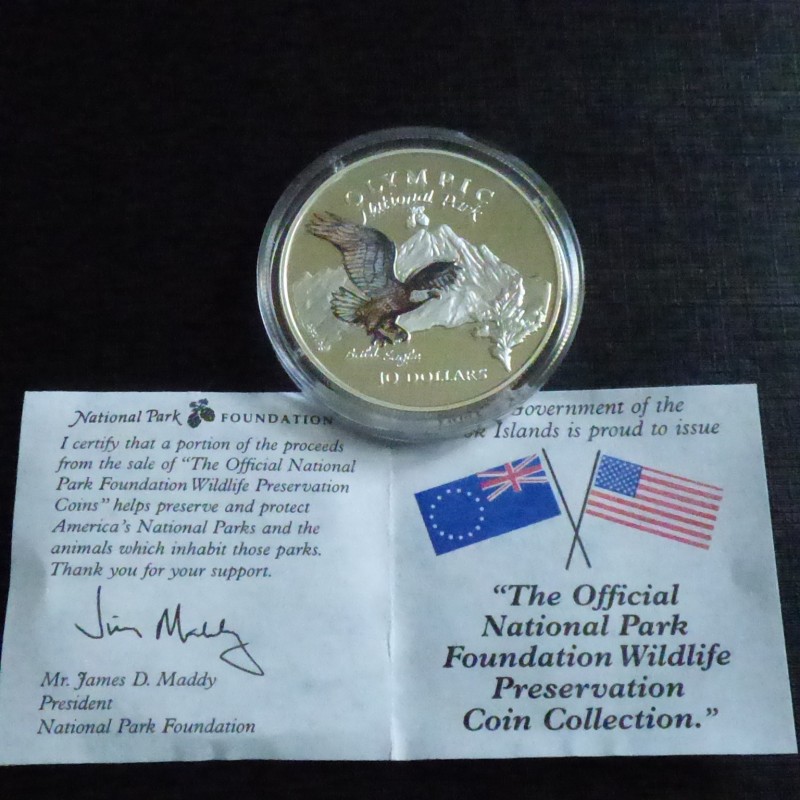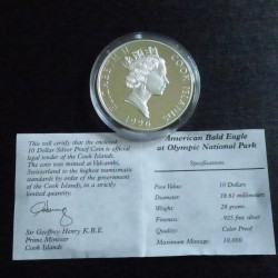 Cook Islands 10$ 1996 American Bald Eagle PROOF colored silver 92.5% (28 g)+CoA