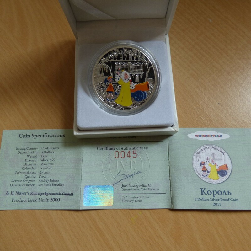 Cook Islands 5$ 2011 Bremer Musician PROOF colored silver 99.9% (1 oz)