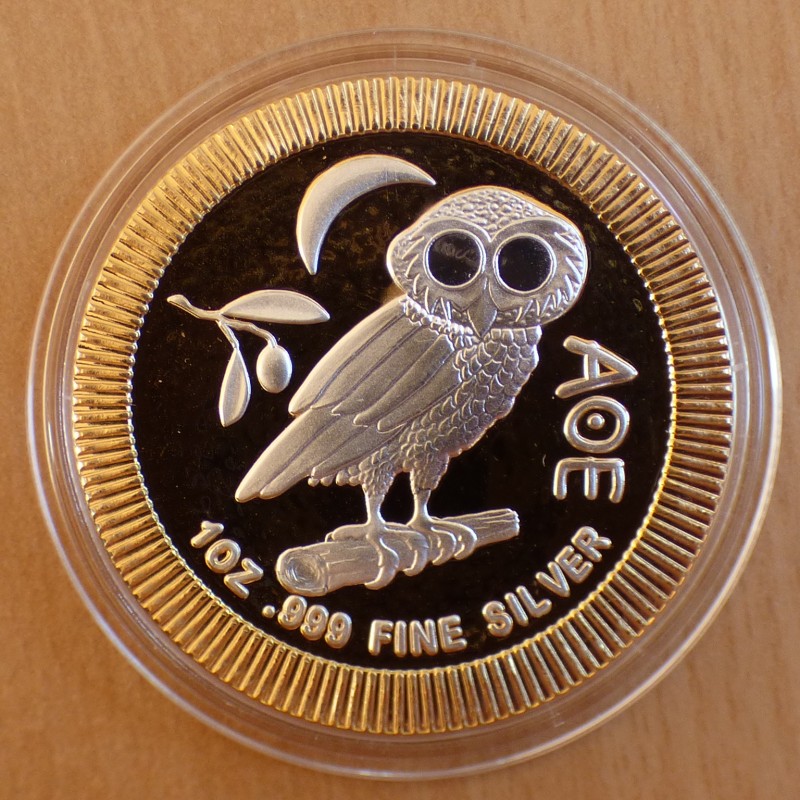 Niue 2$ Athenian Owl 2019 reverse gilded silver 99.9% 1 oz
