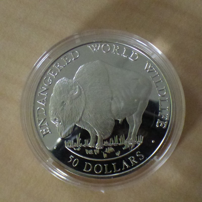 Cook Islands 50$ 1990 Endangered Wildlife Bison PROOF silver 92.5% (19.2 g)
