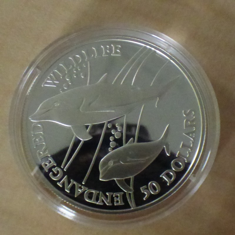 Cook Islands 50$ 1991 Endangered Wildlife Dolphins PROOF silver 92.5% (19.2 g)