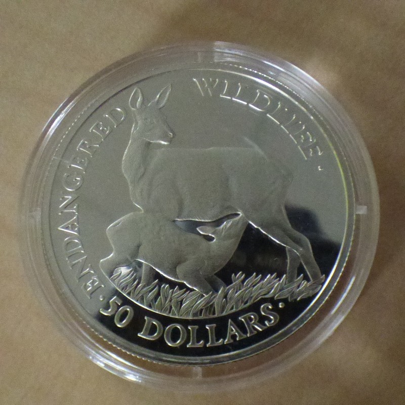 Cook Islands 50$ 1991 Endangered Wildlife Deer / Bambi PROOF silver 92.5% (19.2 g)