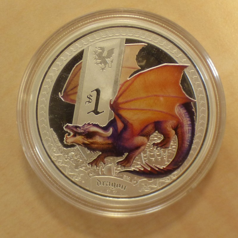 Tuvalu 1$ 2014 Dragon colored silver 99.9% 1 oz