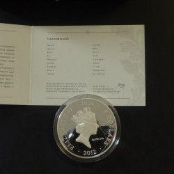 Tokelau 5$ 2012 Tropic Bird Phaeton Rubricauda PROOF colored silver 92.5% 20g+CoA