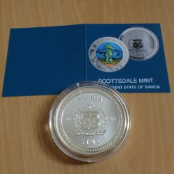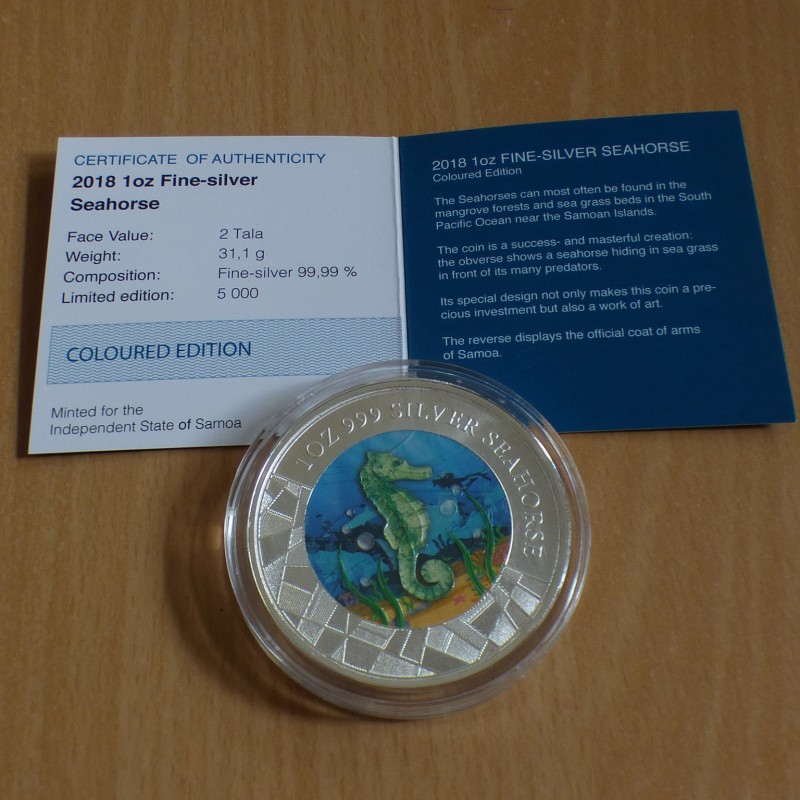 Samoa 2 Tala 2018 Seahorse colored silver 99.9% 1 oz+CoA