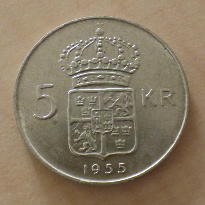 Sweden 5 Kronor 1955 Gustav VI Adolf silver 40% (18g) EF