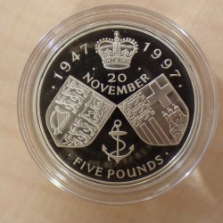 UK 5£ 1997 Golden Wedding PROOF silver 92.5% 28.28g+Box+CoA