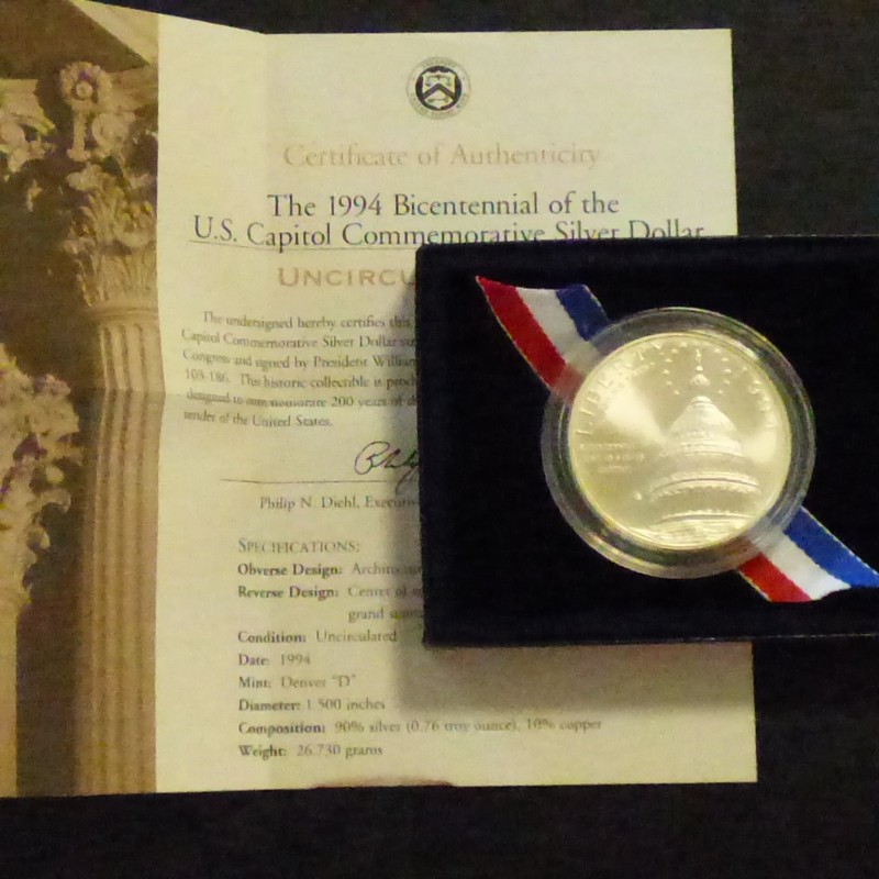 US 1$ 1992-D White House 200 years Commemorative Coin silver 90% (26.73 g)+Box+CoA