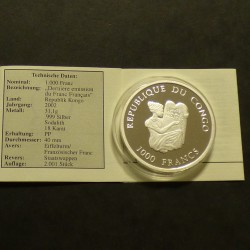 Congo 1000 CFA 2002 Tour Eiffel PROOF avec Sodalite argent 99.9% (31.1g)