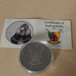 Cameroun 1000 CFA 2017 Mandrill antique finish argent 99.9% 1 oz + CoA