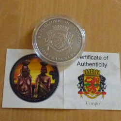 Congo 1000 CFA MURSI 2014 antique finish coloré en argent 99.9% 1 oz+CoA