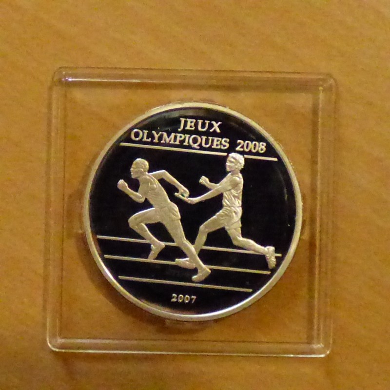 Congo 1000 CFA Jeux Olympiques Relai 2007-2008 PROOF argent 92.5% (20 g) sous capsule