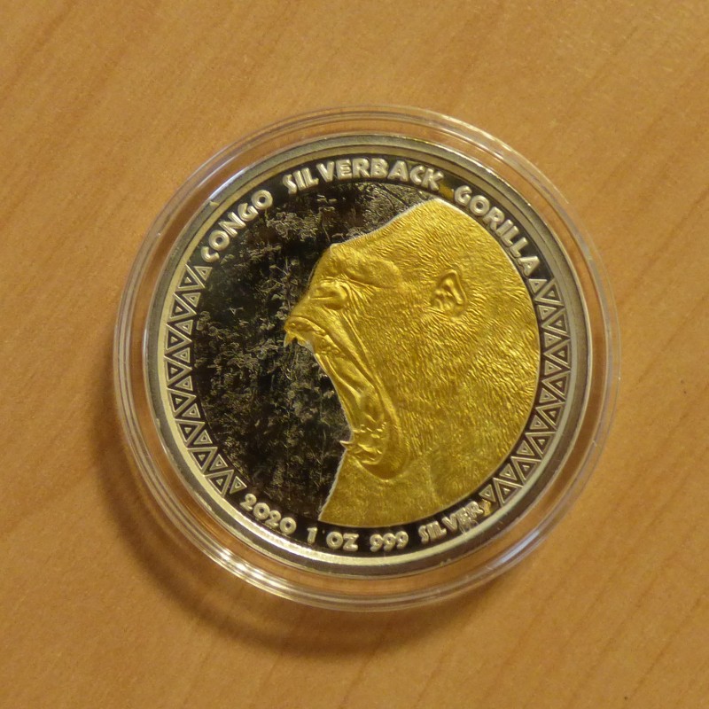 Congo 5000 CFA Gorille Silverback 2020 doré argent 99.9% 1 oz