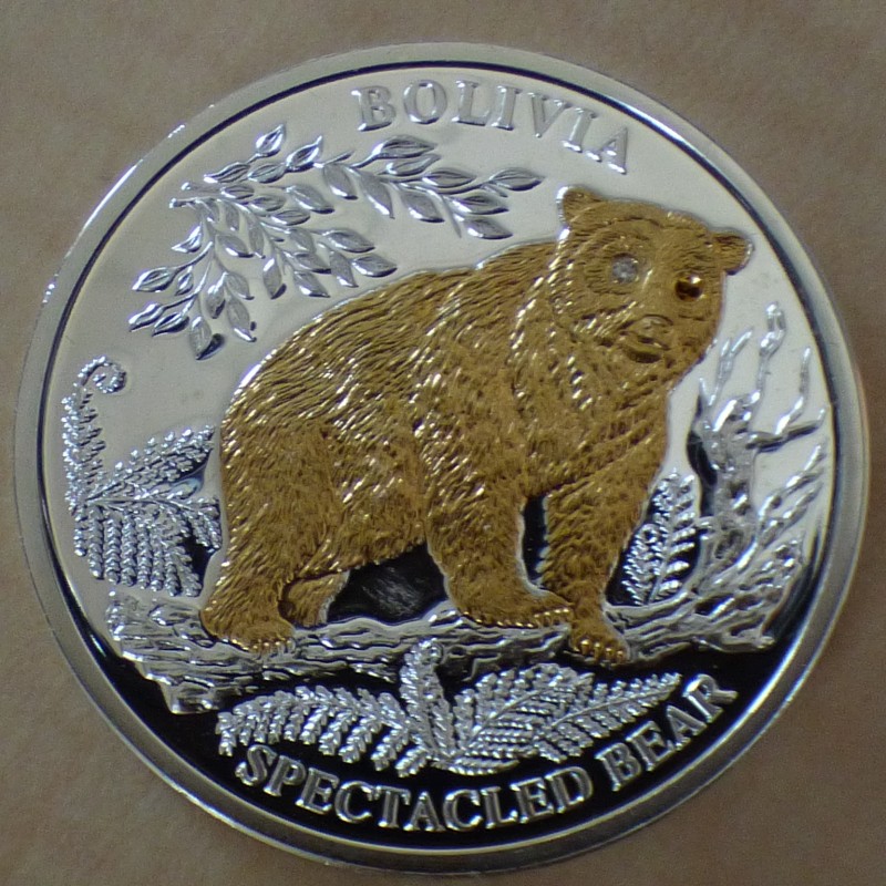 Liberia 10$ 2006 Ours de Bolivie PROOF doré argent 99.9% (20 g)