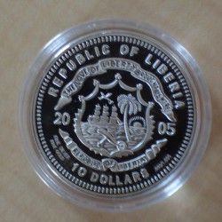 Liberia 10$ 2005 Jaguar PROOF doré argent 99.9% (20 g)